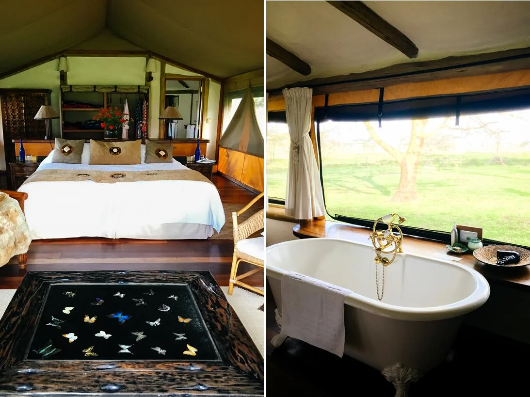 The seven tents are hidden amongst the trees and come with views either over the Mara or down to the river with an immense pod of hippos. They are a mix of wood and billowing canvas with gorgeous interiors combining a colonial bygone era with Kenya’s Swahili and Maasai roots. After 10 days on the road, I thoroughly enjoyed easing myself into the very deep copper bath with a gin and tonic. Then after a delicious dinner around the Boma, I feel asleep to the low bellowing of the hippos and the nocturnal sounds of the African bush.